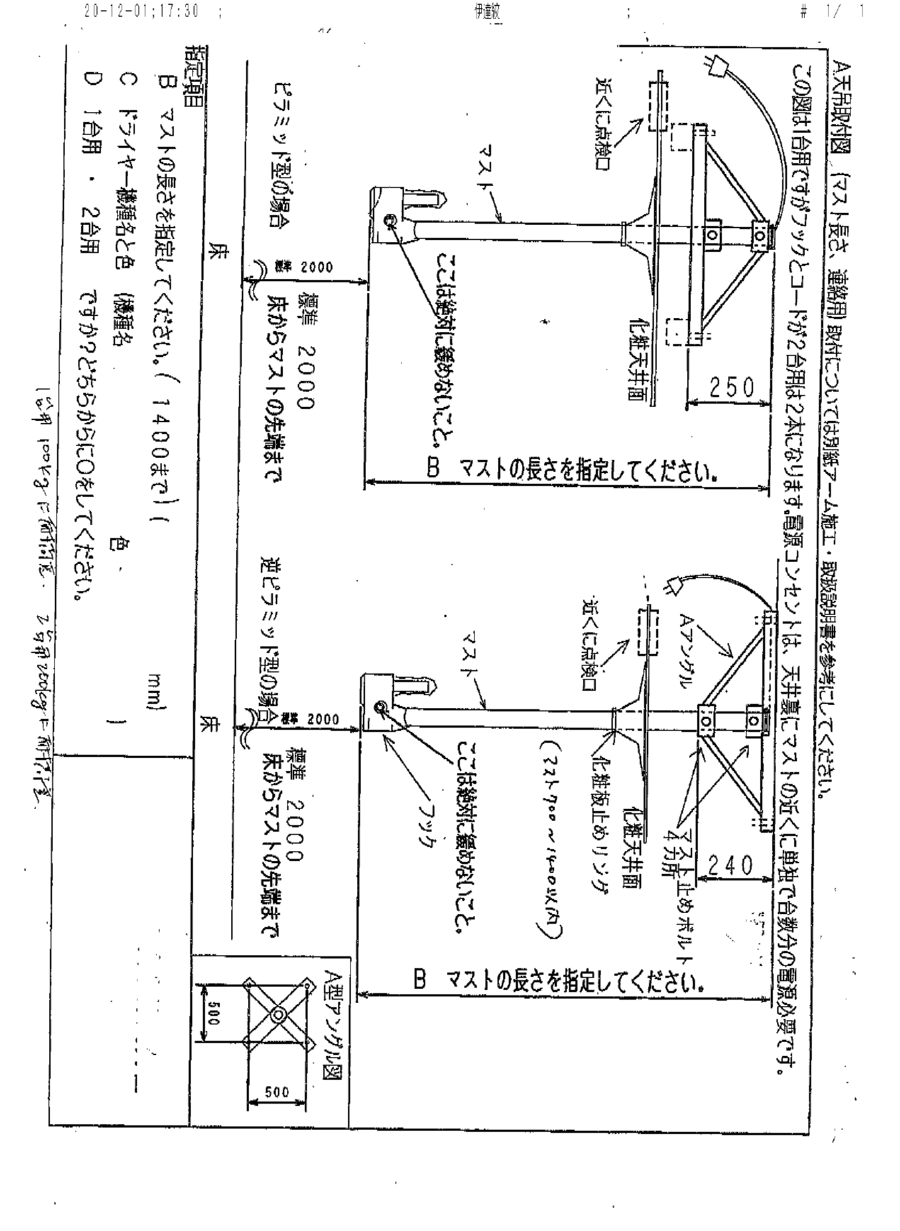 ※ご注文時、マストの長さをご指定下さい。(1400mmまで)