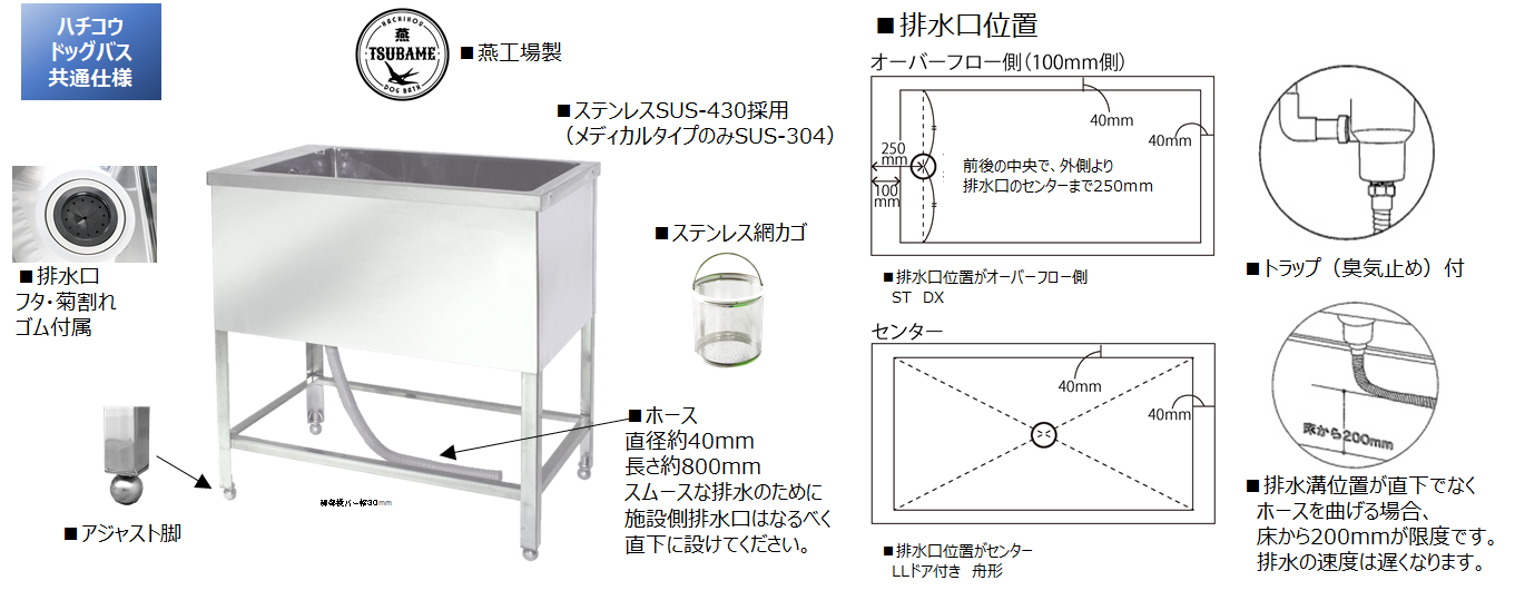 ハチコウドッグバス ST-900N トラップ・臭気止め付 W900(760)xD550(470)xH955~975mm・深さ400mm 【送料無料】